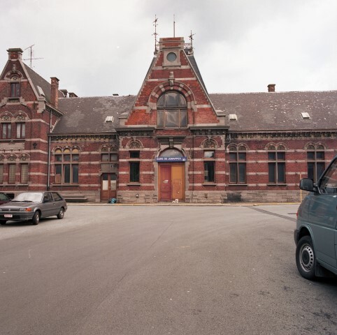 BeschrijvingDe fotogroep bevat drie negatieven. Ze tonen station Jemappes langs de straatkant. Voor het station staan auto's geparkeerd. Dit station ligt langs spoorlijn 97 (Bergen - Quiévrain - Franse grens).