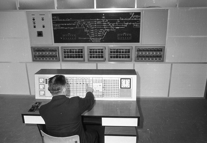 Deze fotogroep bestaat uit twee negatieven. Ze tonen het interieur van seinpost Blok 25 in Landen. Het is een seinpost van het type alrelais. Binnen zien we de bedieningstafel met vooraan de toetsen voor het aanleggen van de reiswegen. De seingever heeft een correspondent aan de telefoon en is bezig met de bediening. Vooraan zien we het optisch controlebord met aan de linkerkant een aantal schakelaars en onderaan bevinden zich verschillende hulpschakelaars. Boven op de bedieningstafels zien we de aanwezigheid van een microfoon die verbonden is met een geluidsinstallatie. Hiermee is het mogelijk om in het station aankondigingen te verzekeren.