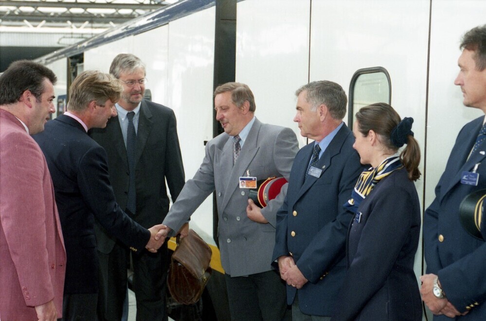 De fotogroep bevat 76 negatieven. Prins Philippe wordt in Brussel-Zuid verwelkomd door E. Schouppe, P. Chevalier, J. Decelle en het Eurostarpersoneel. Daarna volgen enkele opnames aan boord van de Eurostar en van de aankomst in Londen.