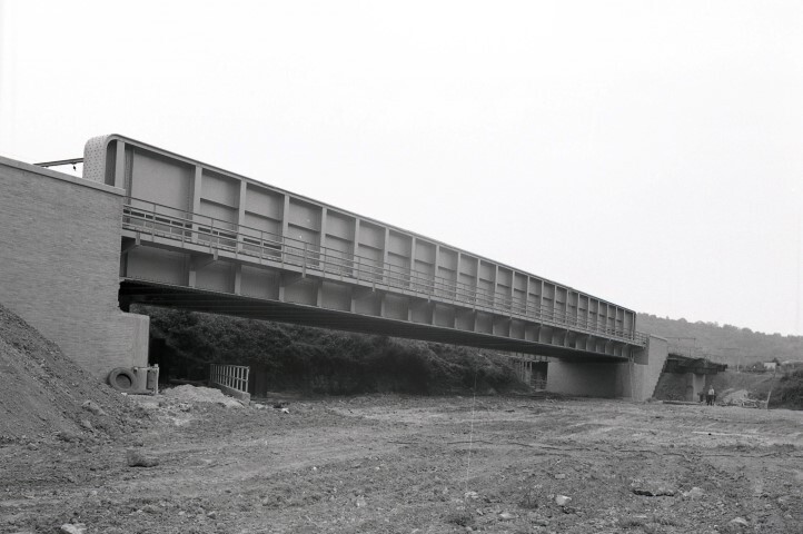 BeschrijvingDeze fotogroep bevat zeven negatieven. Ze tonen de werken aan de nieuwe brug van Floriffoux nabij Floreffe. Naar aanleiding van het rechttrekken van de Samber werd het bochtige tracé van lijn 130 aangepast om hogere snelheden tussen Namen en Charleroi mogelijk te maken. Het moderniseringsprogramma hield o.a. de bouw van een nieuwe brug te Floriffoux in.