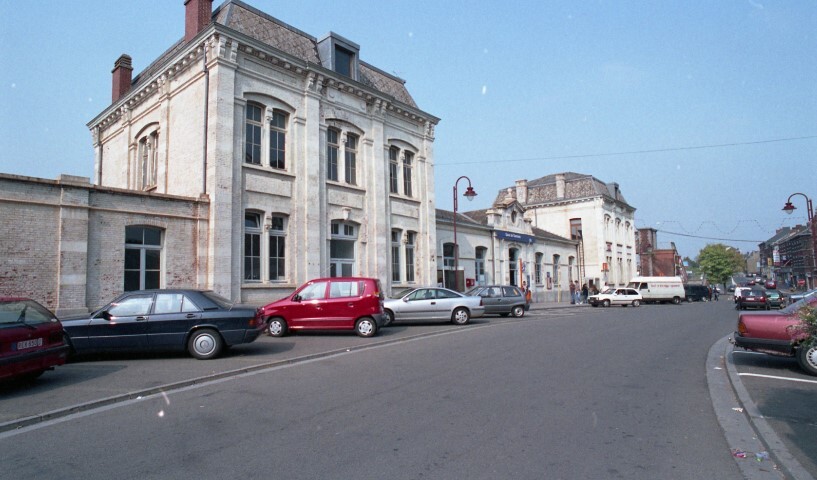 BeschrijvingDe fotogroep bevat vier negatieven. Ze tonen het stationsgebouw uit 1880 aan de straatkant. Dit station ligt aan de kruising van lijn 130 (Namen - Charleroi-Zuid) en lijn 147 (Fleurus - Tamines).