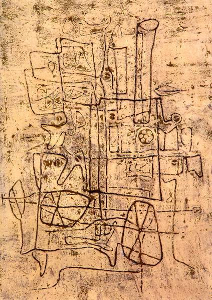 Schilderij uit de reeks "4 voyages pour Cendrars". Begin jaren 1960 bestelde de NMBS een set van vier schilderijen bij de kunstenaar. Ze werden samen opgehangen in het rijtuig eerste klas 61 88 18 89 982 van de Trans Europ Express (TEE).