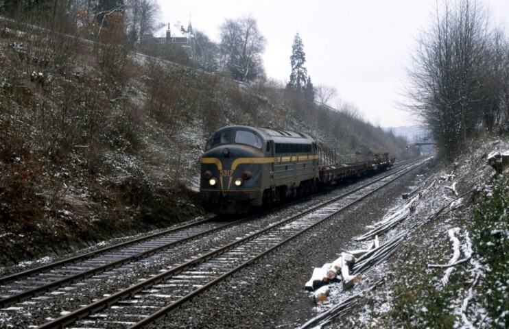 TitelDiesellocomotief 5317 met een goederenrein in Tailfer