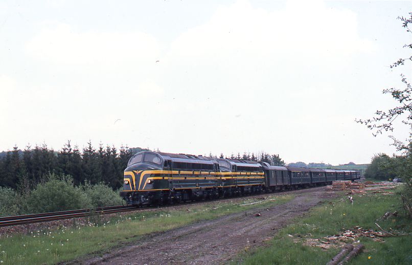 BeschrijvingDeze fotogroep bevat twee dia's. We zien twee locomotieven type 204 met een reizigerstrein samengesteld uit I 1-rijtuigen tijdens een speciale rit.