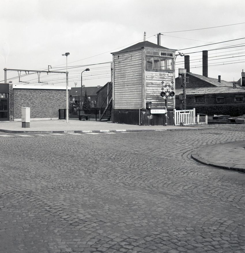 De foto toont de oude seinpost van station Hemiksem. Dit seinhuis stond vlak naast de overweg. Op de gevel is naambord 'B 26' aangebracht (dit betekent: Blok 26). Het seinhuis was gelegen langs spoorlijn 52 (Antwerpen-Zuid – Dendermonde). Het gebouw was opgetrokken uit hout en glas. Links zien we de zijgevel van het huidige stationsgebouw. Naast de seinpost staan een lichtsein en een overweglicht met andreaskruis.