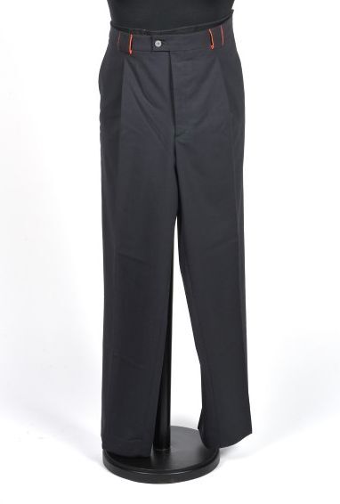 BeschrijvingDonkergrijze broek met oranje afwerking bovenaan. Op de grijze knopen staat het NMBS-logo.
