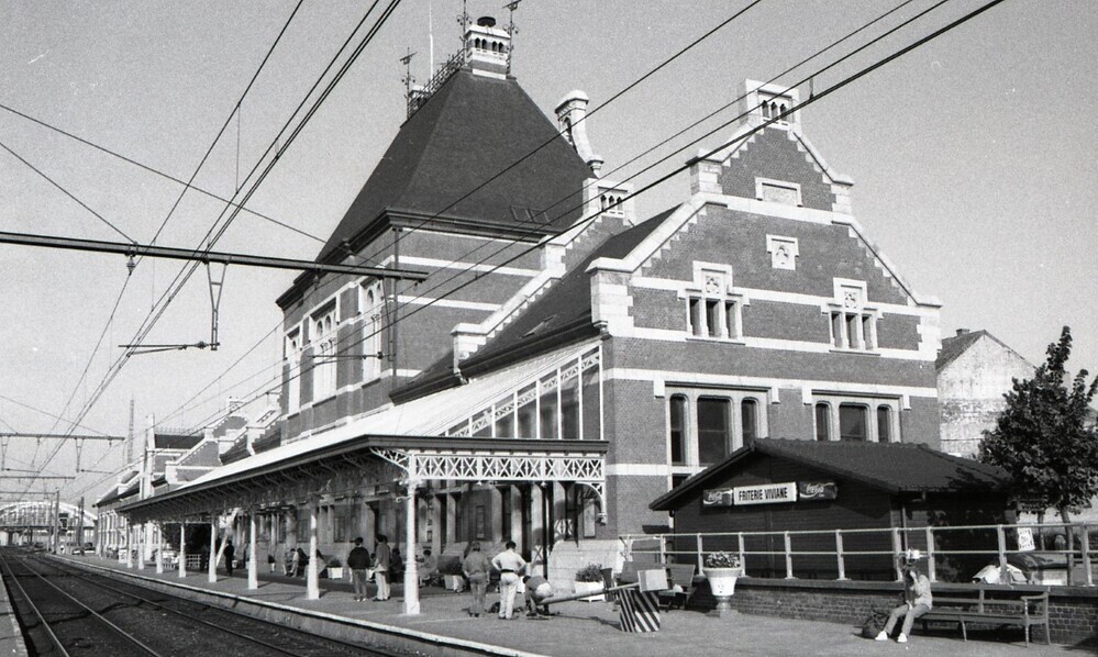 De fotogroep bevat 42 negatieven. Ze tonen het station Aat aan de kant van de sporen. Het gebouw is in Vlaamse neorenaissancestijl opgetrokken. Trapgevels, kruiskozijnen en speklagen kenmerken deze bouwstijl. Verschillende foto's geven detailbeelden van de perronluifel in staal en glas. Het perron is met zitbanken, bloembakken en een stationsklok uitgerust. Op enkele foto’s staan treinen aan het perron. Motorstel 739 staat klaar om richting Brussel te vertrekken. De laatste foto's tonen de stationsparking.