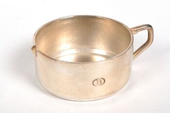 BeschrijvingRond kannetje met het logo van de NMBS. Het kannetje heeft een oor en een erg kleine schenktuit.