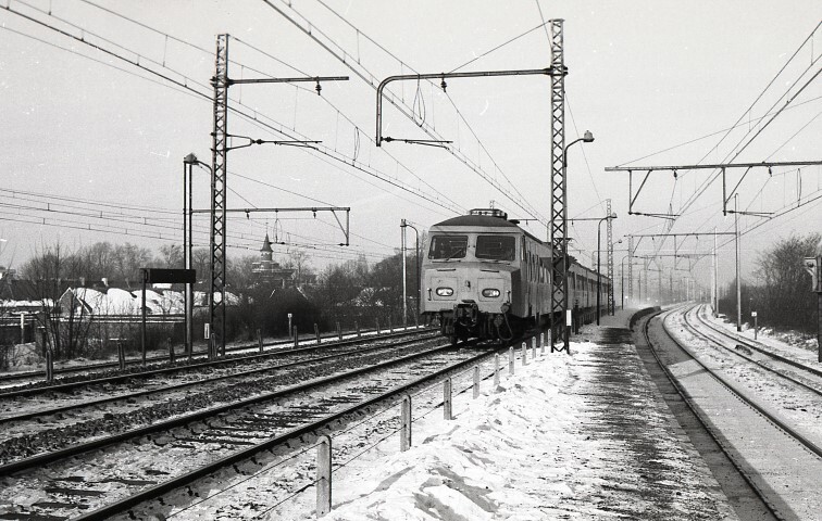 Dit motorstel behoort tot de reeks 08 (vierledig). Het bevindt zich op spoorlijn 25 en rijdt richting Mechelen. Rechts zien we de sporen van lijn 27B. We zien ook de vakwerkbovenleidingspalen langs lijn 25.