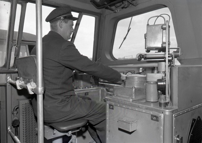 Deze fotogroep bestaat uit vier glasplaten. Ze tonen de stuurpost en het motorgedeelte van diesellocomotief 210.002 (type 210 proto). De bedieningstafel is uitgerust met drukknoppen, schakelaars, wijzerplaten, een snelheidsmeter en Teloc. De Teloc registreert de snelheid van de locomotief en de seinen die ze passeert. Met de rechterhand bedient de machinist de handel van de versnellingsbak of gangwissel.