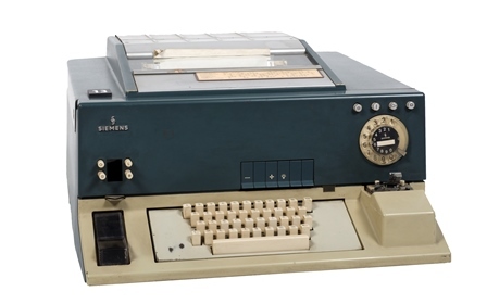 De telex is een toestel waarmee getypte mededelingen worden overgebracht naar een ontvangtoestel op afstand. De telex bestaat onder andere uit een mechanische schrijfmachine met lint. Deze is samen met de draaischijf en verschillende knoppen in een blauw-beige bak ingebouwd.