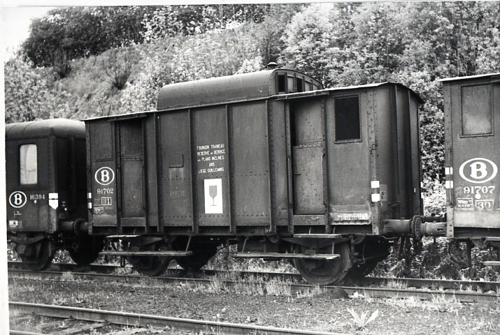 De fotogroep bestaat uit twee negatieven. Ze tonen de metalen rempakwagen 91.702 op twee assen met uitkijkpost. Deze wagen werd ingezet op de hellende vlakken van Luik om een dalende trein van extra remkracht te voorzien. Op de zijwand staat 'Fourgon traineau réserve de service des plans inclinés Ans Liège Guillemins'. Het icoon met een rood glas op een witte achtergrond betekent dat de wagen voorzichtig verplaatst moet worden.