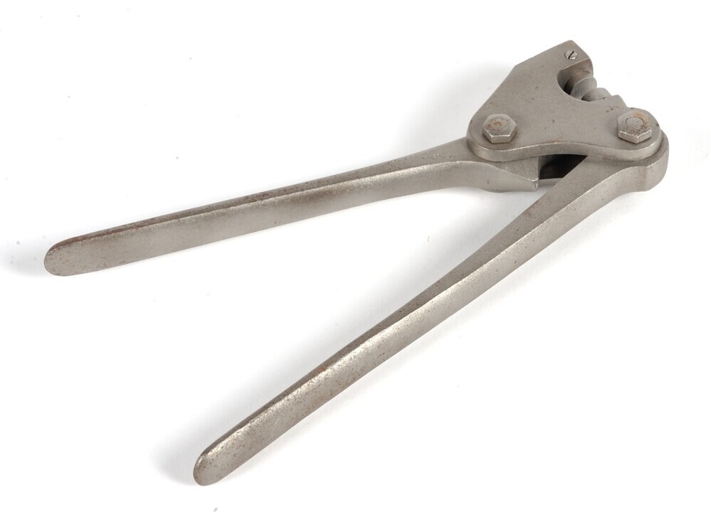 BeschrijvingNijptang voor het beveiligd afsluiten van geldzakken, kisten, sleutelkasten, enz. door middel van verzegelloodjes. Bij het dichtknijpen bracht de tang een merkteken aan op het loodje.