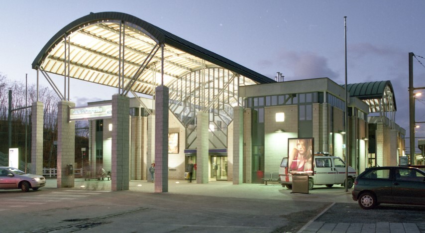 BeschrijvingDe fotogroep bevat 10 negatieven. We zien de voorgevel en de inkom met grote afgeronde luifel. Station Ottignies ligt langs spoorlijn 161 (Schaarbeek - Ottignies - Namen).