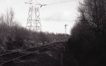 BeschrijvingDeze foto toont spoorlijn 21B in As. Langs de enkele lijn staat een mechanisch waarschuwingssein van het tweestandenstelsel. Rechtsonder zien we de draadgeleidingen die het sein bedienen.