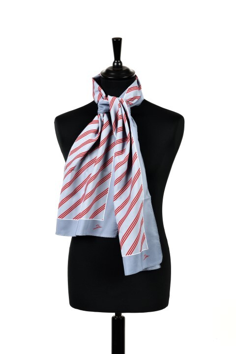 BeschrijvingHet sjaaltje is grijs met bordeaux en witte diagonale strepen. Aan beiden uiteinden staat het logo van Thalys.