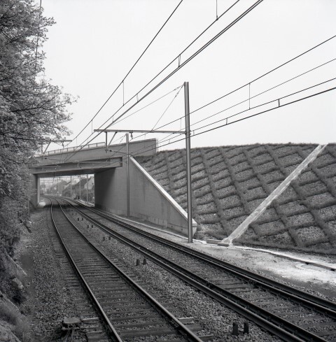 Deze fotogroep bestaat uit 16 negatieven. In Ampsin werden twee overwegen op spoorlijn 125 (Luik-Guillemins -Namen) afgeschaft en vervangen door overbruggingen. Op foto N is een reizigerstrein zojuist onder de overbrugging gepasseerd. De trein wordt gesleept door een diesellocomotief reeks 60/61 (type 210).