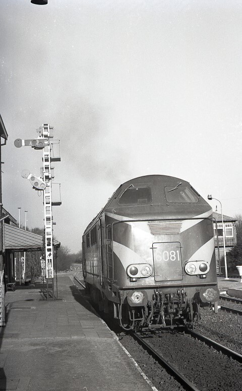 Deze fotogroep bevat 70 negatieven. Op de foto's zien we diesellocomotief 6081 in het station van As. Deze locomotief behoort tot de reeks 60 en heeft op verschillende foto's M 2-rijtuigen aan de haak. Verder zien we mechanische seinen van het tweestandenstelsel en een blokpost. Op andere foto's krijgen we een beeld van spoorlijn 21A. Schenking van Myriam Hendrickx.
