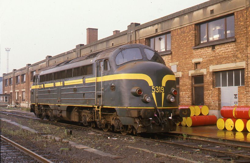 Deze fotogroep bestaat uit zeven dia's. Diesellocomotief 5319 (reeks 53) staat op een spoor in het vormingsstation Ronet. De locomotief is groen geschilderd met een gele zichtbaarheidsstreep. Op de achtergrond zien we één van de dienstgebouwen. Schenking van Myriam Hendrickx.