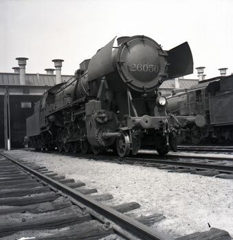 TitelStoomlocomotief 26.050 in de werkplaats Monceau