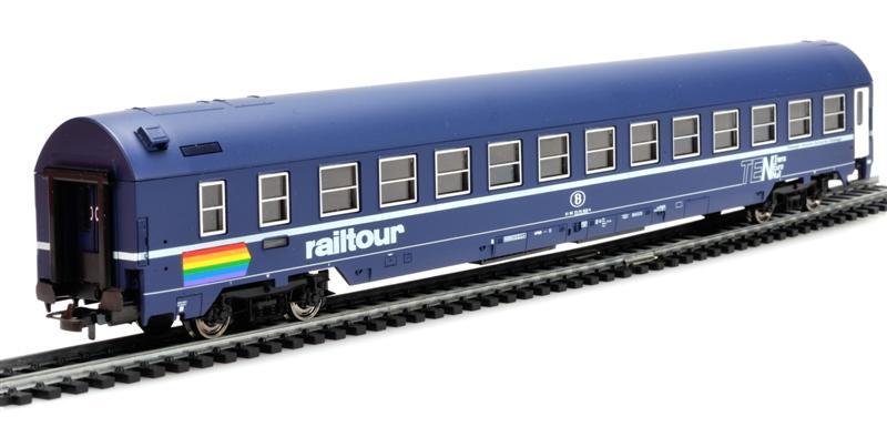 De Trans Euro Nacht (TEN) is de nachtelijke tegenhanger van de TEE en kan met een rijdend hotel vergeleken worden. In 1995 werd deze dienst beëindigd en werden de rijtuigen onder de diverse deelnemende spoorwegmaatschappijen verdeeld. Dit is een blauw schaalmodel van een slaaprijtuig type MU, dat door de NMBS werd overgenomen. Op de zijkanten staan verschillende opschriften, zoals het rijtuignummer en 'Railtour'; dit is een Brussels reisbureau dat onder andere treinvakanties naar skioorden verzorgde. De maquette werd op schaal H0 1/87 vervaardigd.