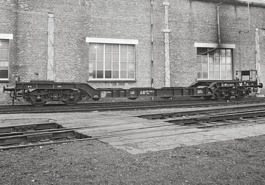 Deze fotogroep bevat acht negatieven. Ze tonen platte wagen 31 88 929 7005-2 met verlaagde vloer van het type 3000S1. De wagen kreeg een volledig nazicht in oktober 1971 en is hier opgesteld naast de wagenwerkplaats van Antwerpen-Dam. Hij heeft twee draaistellen met elk twee assen en tussenin een verlaagde vloer. De wagens met verlaagde vloer worden voornamelijk gebruikt voor het vervoer van volumineuze goederen waardoor ruimte kan ingewonnen worden in de hoogte.