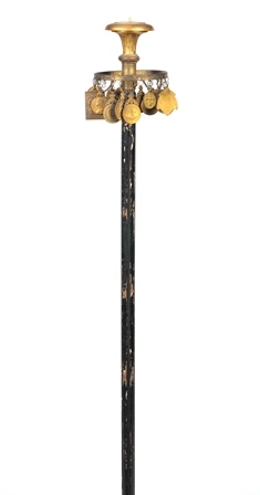 BeschrijvingAan de houten vergulde standaard hangen 16 medailles van mutualiteiten en verenigingen.