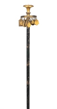 TitelStandaard met medailles en een gevleugeld wiel met leeuw op top