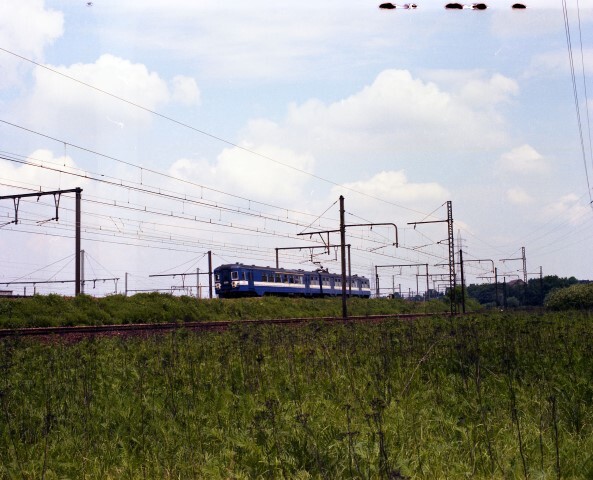 BeschrijvingDeze fotogroep bestaat uit twee negatieven. Ze tonen motorstel 595 op weg naar Brussel. Het treinstel is blauw geschilderd met een brede witte band.