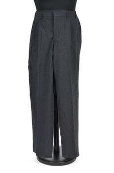 BeschrijvingDeze donkergrijze broek heeft twee steekzakken en wordt vooraan gesloten met een rits en een metalen sluiting. Achteraan zijn twee zakken, afgesloten met een knoop waarop 'Thalys' en het logo staan.