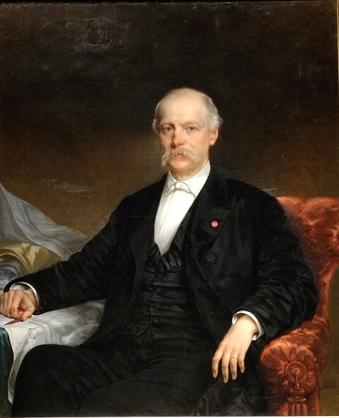 Alfred-Jules Belpaire (1820-1893) was ingenieur bij de Belgische Staatsspoorwegen. Hij was ontwerper van talrijke types stoomlocomotieven en uitvinder van de platte vuurhaard, die sindsdien zijn naam draagt. Op dit schilderij is hij gezeten in een rode armstoel. In zijn rechterhand houdt hij een pen vast boven een technische tekening.