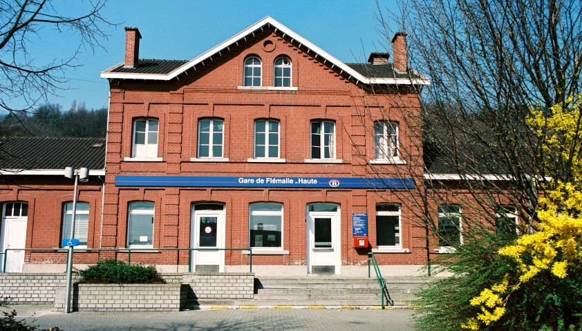 De fotogroep bevat acht negatieven. Ze tonen de voorgevel van het station Flémalle-Haute. Dit station ligt langs spoorlijn 125 (Luik - Hoei - Namen). Het werd geopend in 1850 en tot 1940 geëxploiteerd door de Compagnie du Nord-Belge. Het gebouw is een standaardtype van de Compagnie du Nord, waarvan een tiental exemplaren in Frankrijk werden gebouwd, maar het was het enige in België. Sinds 2015 is het een stopplaats.