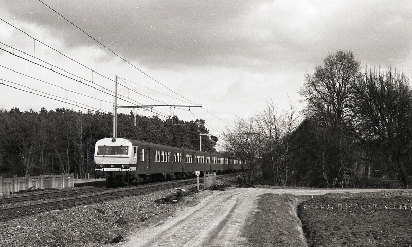 Deze foto toont een M 2-rijtuig met bagageafdeling en zitplaatsen tweede klas, dat ongevormd werd naar een rijtuig met stuurpost voor elektrische tractie. Dankzij dit rijtuig moet de locomotief niet van plaats verwisseld worden bij een andere rijrichting van de trein; de machinist kan de trein dan vanuit het rijtuig met stuurpost besturen. Bemerk links een typische spoorwegafsluiting bestaande uit betonnen elementen. Schenking van Myriam Hendrickx.
