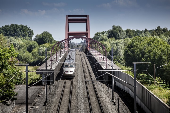 BeschrijvingDe groep bestaat uit twee digitale foto’s. Een TGV Réseau van de Franse spoorwegen (SNCF) is juist een spoorwegbrug over gereden op hogesnelheidslijn 1 in de omgeving van Antoing.