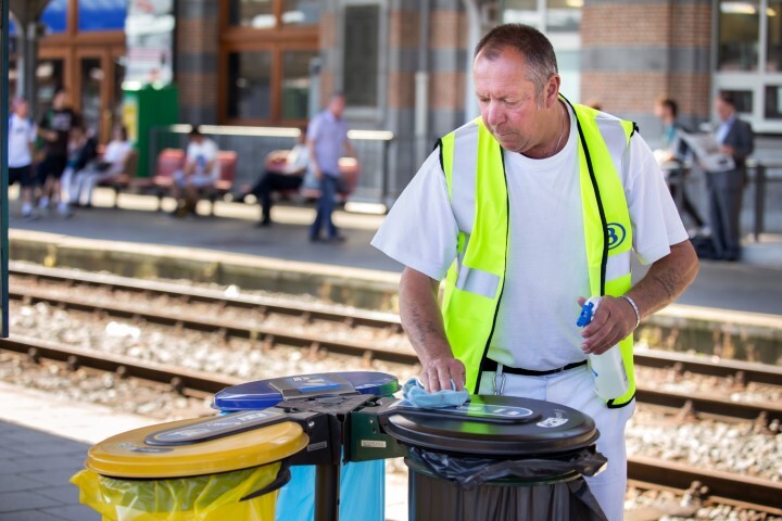 BeschrijvingDeze groep bevat 13 digitale foto’s. Ze tonen een operator onderhoud van NMBS. Hij is bezig met het kuisen van de perrons van station Doornik.