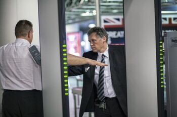 BeschrijvingDeze groep bestaat uit 8 digitale foto’s. Ze tonen de controle bij de check-in van de Channel Terminal in station Brussel-Zuid, uitgevoerd door een veiligheidsagent.