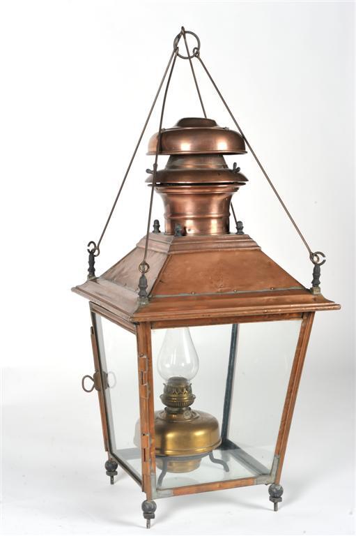 Ruitvormige lantaarn op vier pootjes. De lantaarn heeft vier glazen zijden rond een petroleumlamp. Bovenaan bevindt zich een grote ring. Dit soort lantaarns werd gebruikt om de perrons en de onmiddellijke omgeving van stations te verlichten.