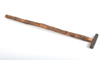 BeschrijvingDe hamer heeft een lange houten steel. Hij werd door een schouwer gebruikt om de toestand van de wielen en de remblokken van het rollend materieel te controleren.