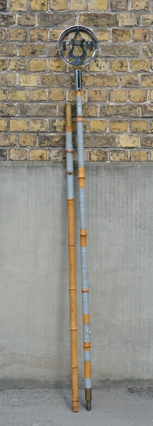 De standaard bestaat uit twee bamboestokken die via een metalen tussenstuk op elkaar kunnen gezet worden. Bovenaan bevindt zich een metalen ornament. Dit bestaat uit een cirkel met daarin een lier en de letters H A M.