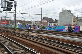 BeschrijvingDeze groep bestaat uit 11 digitale foto’s. Ze tonen graffiti op de muur langs de sporen bij het station Antwerpen-Berchem.