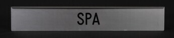 BeschrijvingAluminium bordje met zwarte letters. Het bord werd aan een treinaankondiger gehangen om treinen richting Spa aan te kondigen.
