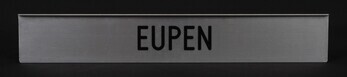 BeschrijvingAluminium bordje met zwarte letters. Het bord werd aan een treinaankondiger gehangen om treinen richting Eupen aan te kondigen.