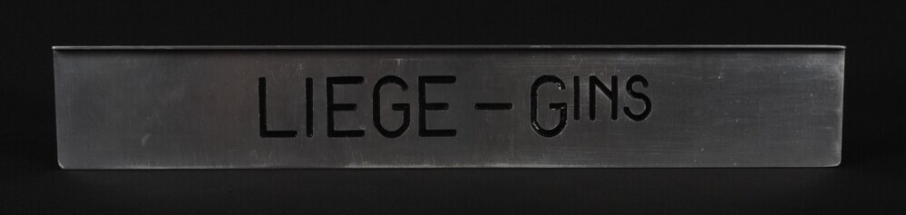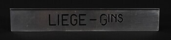 BeschrijvingAluminium bordje met zwarte letters. Het bord werd aan een treinaankondiger gehangen om treinen richting station Luik-Guillemins aan te kondigen.