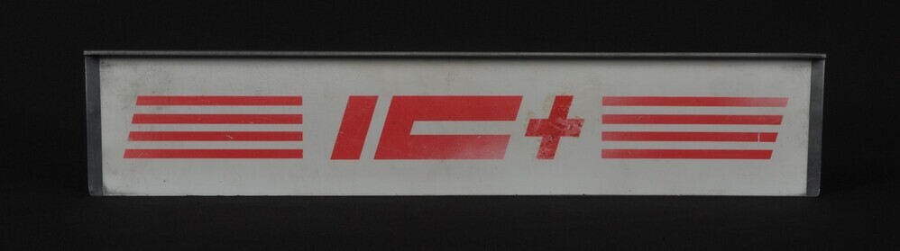Aluminium bord met rode letters. Het opschrift wordt aan beide zijden geflankeerd door vier rode strepen. Dit bord werd aan een treinaankondiger gehangen om internationale IC-treinen aan te kondigen. De internationale IC-treinen waren van bijna hetzelfde comfortniveau als de TEE-treinen, maar er liepen ook tweedeklasrijtuigen in.