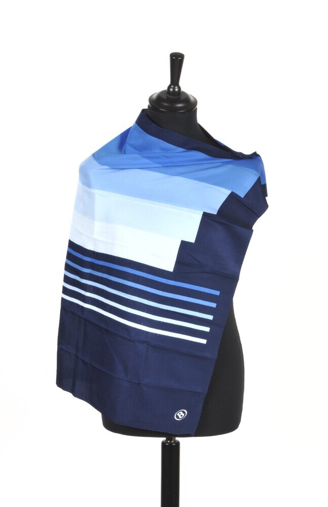 BeschrijvingHalsdoek in verschillende tinten blauw en wit. In een hoek bevindt zich het logo van NMBS in wit.