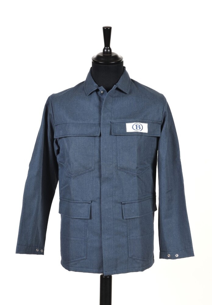 BeschrijvingDe grijze jas is gemaakt uit een brandwerende stof. Ze heeft lange mouwen en verschillende zakken. Op de linkerborst staat het logo van NMBS.