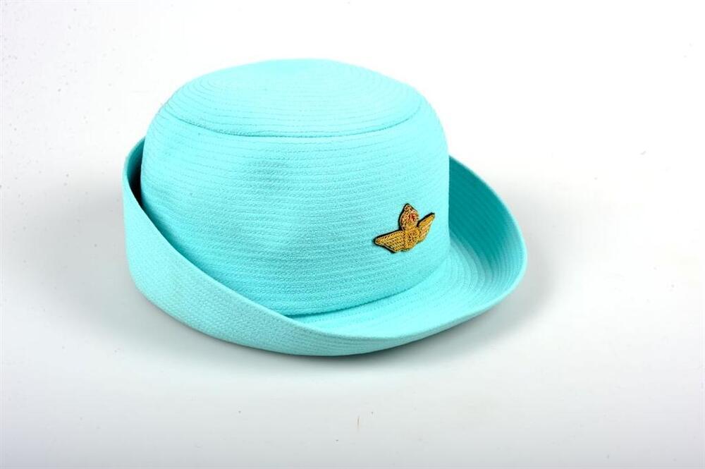 De spoorhostess was de 'gastvrouw' van de NMBS en heette de bezoekers welkom aan het onthaal. Het beroep ontstond op de Expo 58, waar verschillende spoorhostessen werden ingezet op het paviljoen van de NMBS. Dit appelblauwzeegroene hoedje met opstaande rand heeft vooraan een geborduurd spoorweginsigne. Het werd gedragen door de spoorhostessen in het onthaalsalon voor buitenlandse reizen te Brussel-Zuid.