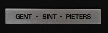 BeschrijvingAluminium bordje met zwarte letters. Het bord werd aan een treinaankondiger gehangen om treinen richting station Gent-Sint-Pieters aan te kondigen.