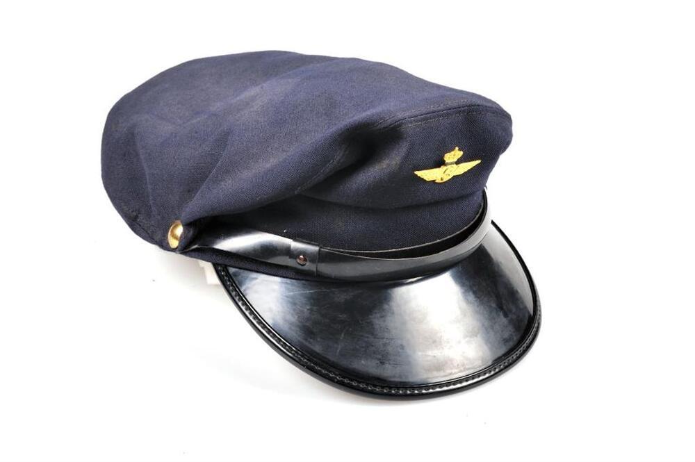 Zwarte dienstpet met zwarte klep in kunststof. De stormband is van kunststof en vastgemaakt met twee goudkleurige knopen. Ook de zijkanten worden door de knopen beneden gehouden. Vooraan is een spoorweginsigne bevestigd. De pet is verstevigd met een leren band en de zomervoering is zwart.