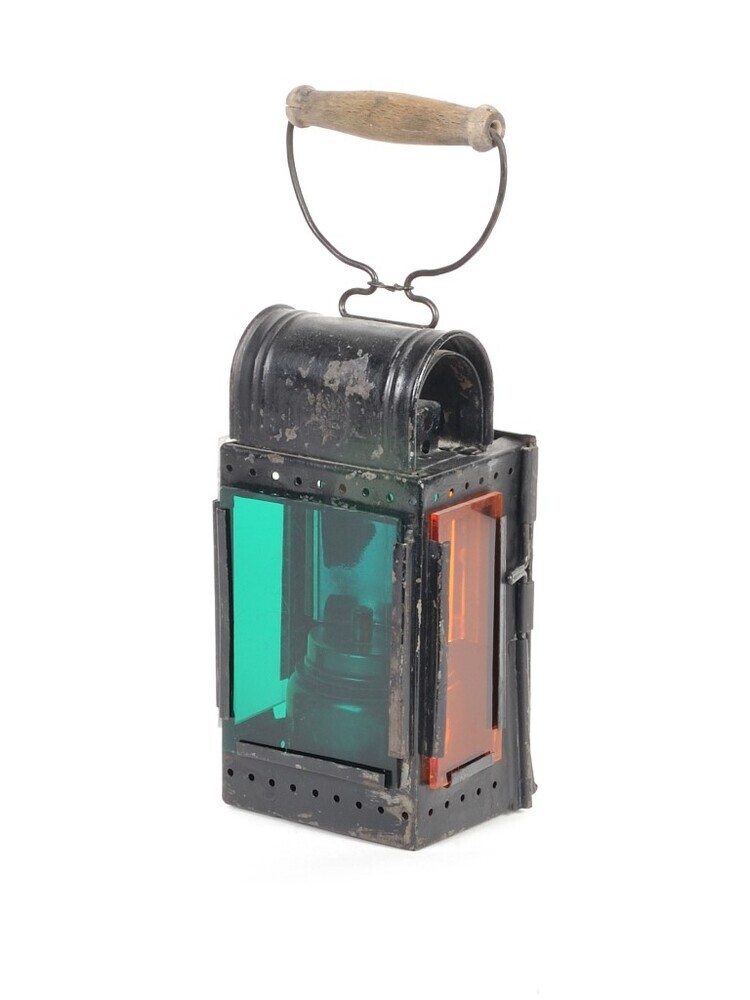 In geval van nood of bij een defect sein kon men met een handsein een waarschuwing geven aan de treinbestuurders. 's Nachts deed men dit door de trein tegemoet te lopen, zwaaiend met een seinlantaarn. Deze lantaarn heeft drie glazen zijden in verschillende kleuren: groen (om doorrijden toe te laten tegen de normale snelheid), geel (om doorrijden toe te laten, maar wel tegen een verminderde snelheid) of wit (om de uitvoering van bepaalde bewegingen te bevestigen). Schenking van Johan Verhoeven.